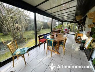 L’entrée dessert une cuisine indépendante de 10 m², pouvant accueillir un espace repas, ainsi qu’un séjour lumineux de 22 m². Celui-ci s’ouvre sur une véranda de 20 m² exposée plein sud, apportant une agréable luminosité et un espace de vie supplémentaire.